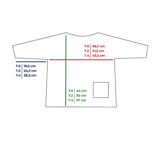Bata escolar confeccionada en tela de algodón 100%, con estampados simpáticos y divertidos para que los peques disfruten cada vez que se la pongan. Acabados con goma en el cuello y las mangas.