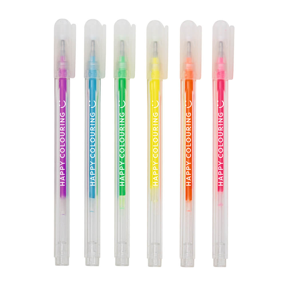 6 preciosos bolígrafos gel en colores neón.
