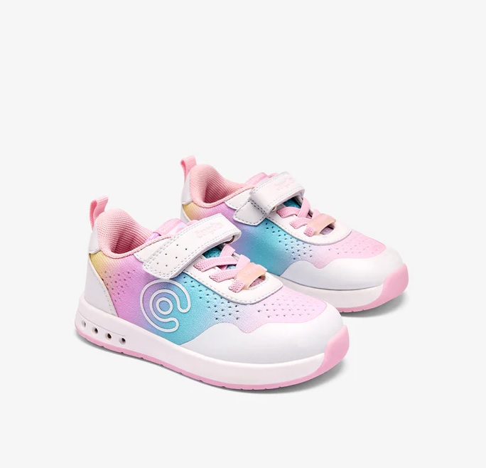 La suela está equipada con luces que se encienden con cada pisada, lo que convierte cada paso en un momento divertido. También cuenta con plantilla extraíble y drop cero, asegurando una pisada suave, saludable y estable.