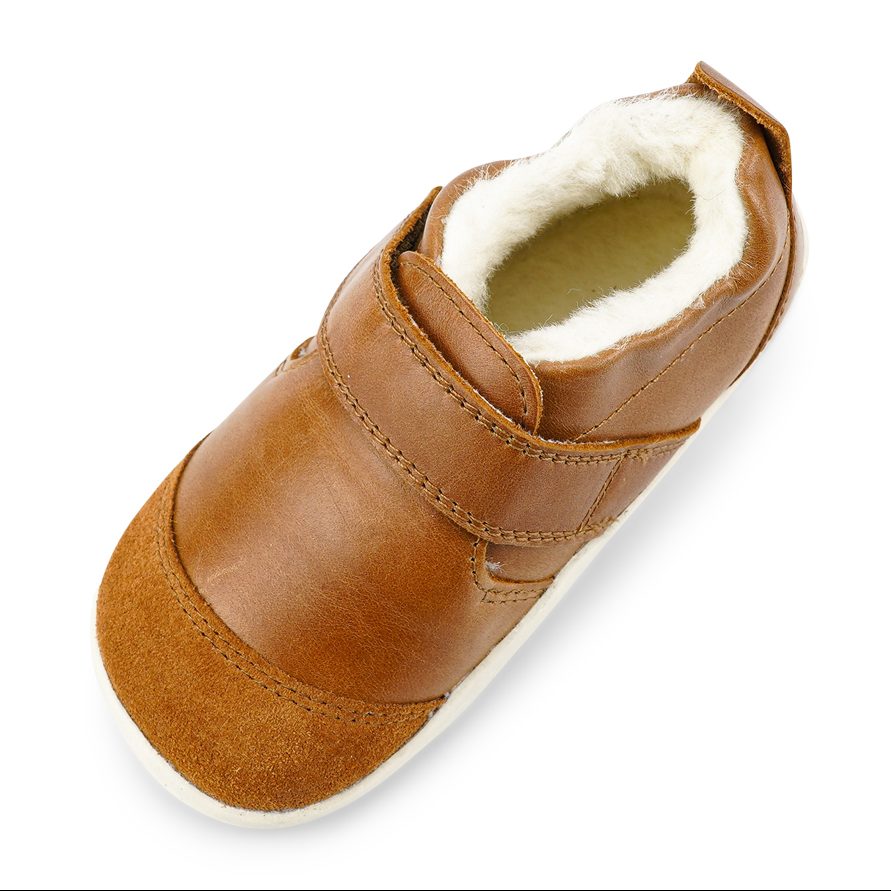 Calzado respetuoso de piel de primera calidad, perfecto para los pequeños gateadores y los preandantes. Interior forrado en merino cálido y transpirable.