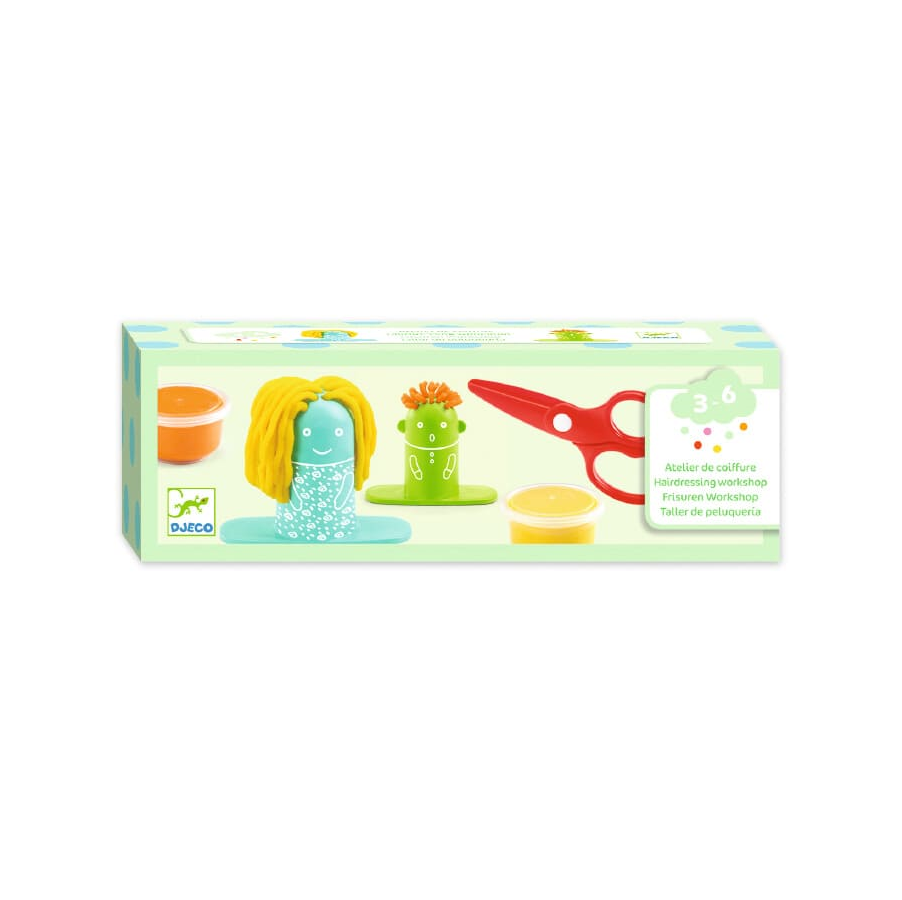 Una actividad original y divertida para jugar a peluqueros con plastilina. Coloca la plastilina en el interior de los personajes y presiona: ¡el pelo crece en su cabeza! A continuación, utiliza las tijeras para hacer bonitos cortes.