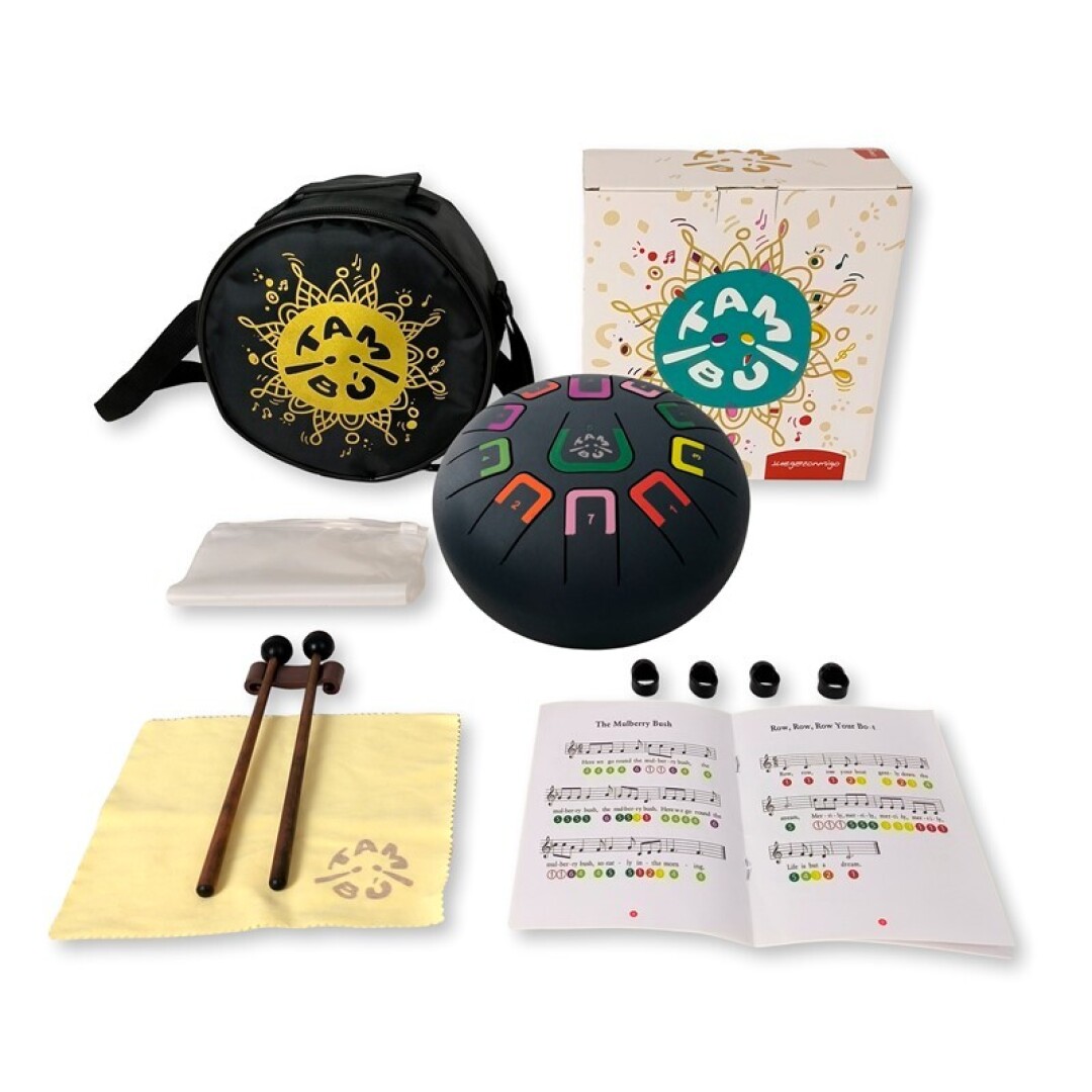 El TAMBÚ puede hacerse sonar de diferentes maneras. Viene acompañado de partituras en números y colores para aquellos que empiezan.