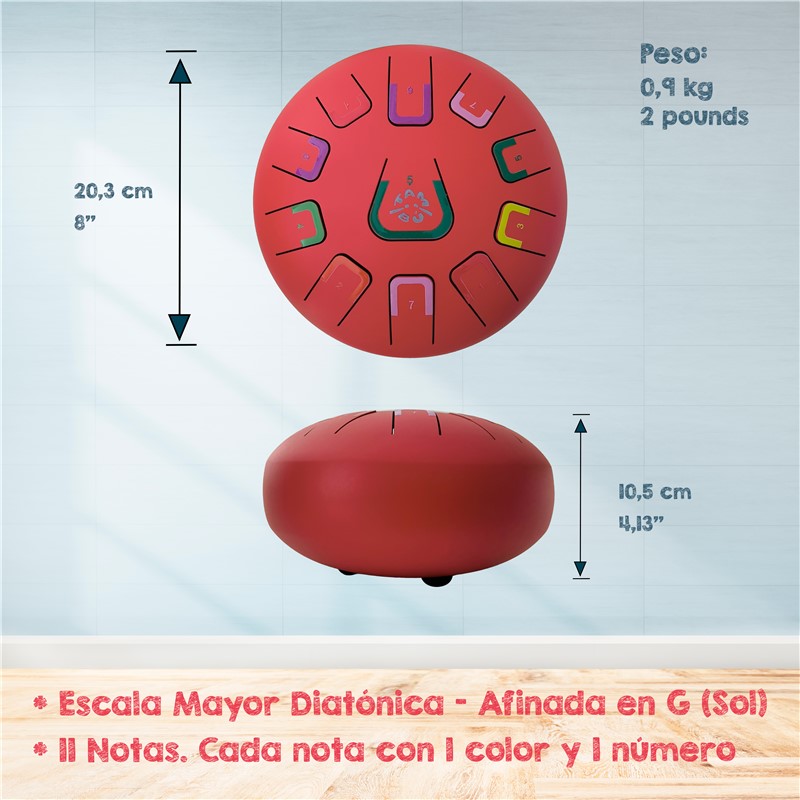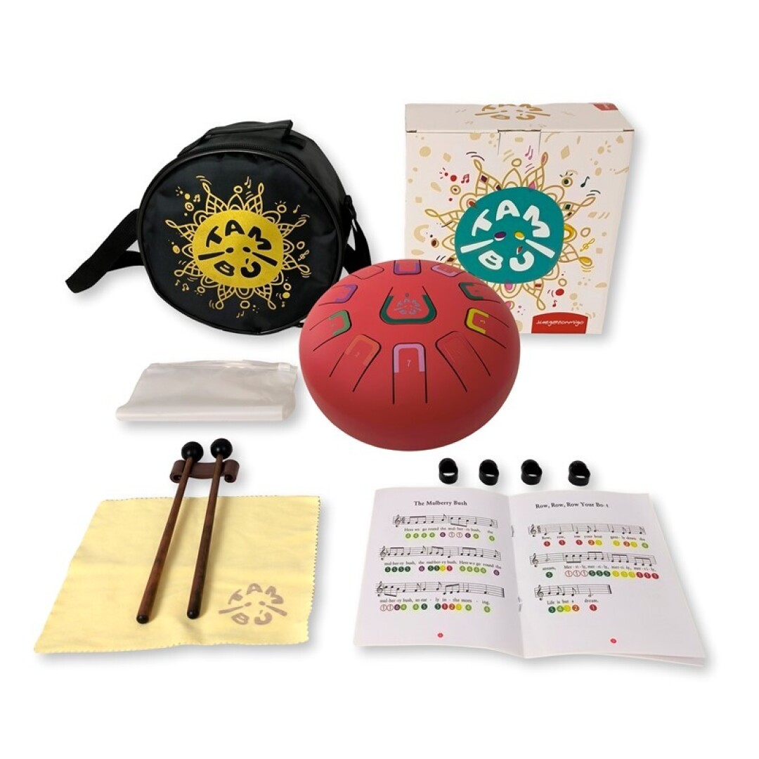 El TAMBÚ puede hacerse sonar de diferentes maneras. Viene acompañado de partituras en números y colores para aquellos que empiezan.